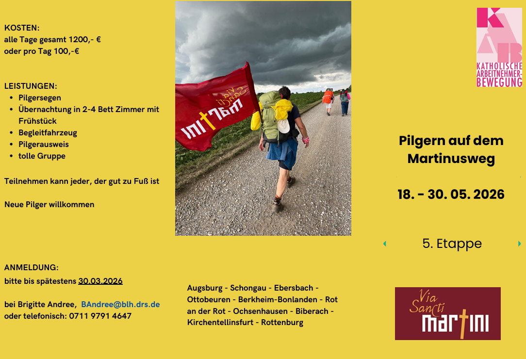 Weitere Einzelheiten unter folgendem Link auf der Homepage der KAB: https://www.kab-drs.de/angebote/programm-2024/veranstaltungen/martinusweg